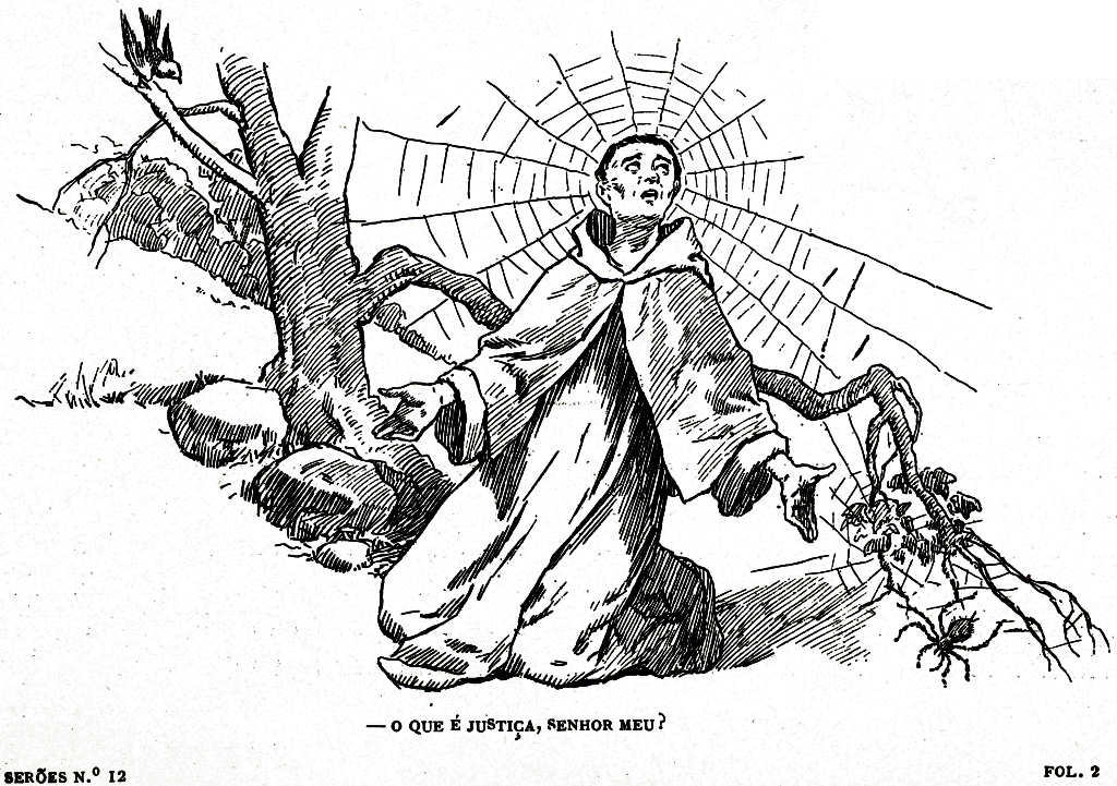 – Enganas-te frade; não foi a justiça que te inspirou, porque a justiça... não existe sobre a terra. Se existisse e tu a compreendesses, nada tinhas que fazer entre essas duas criaturas; e apontava a aranha e a ave.