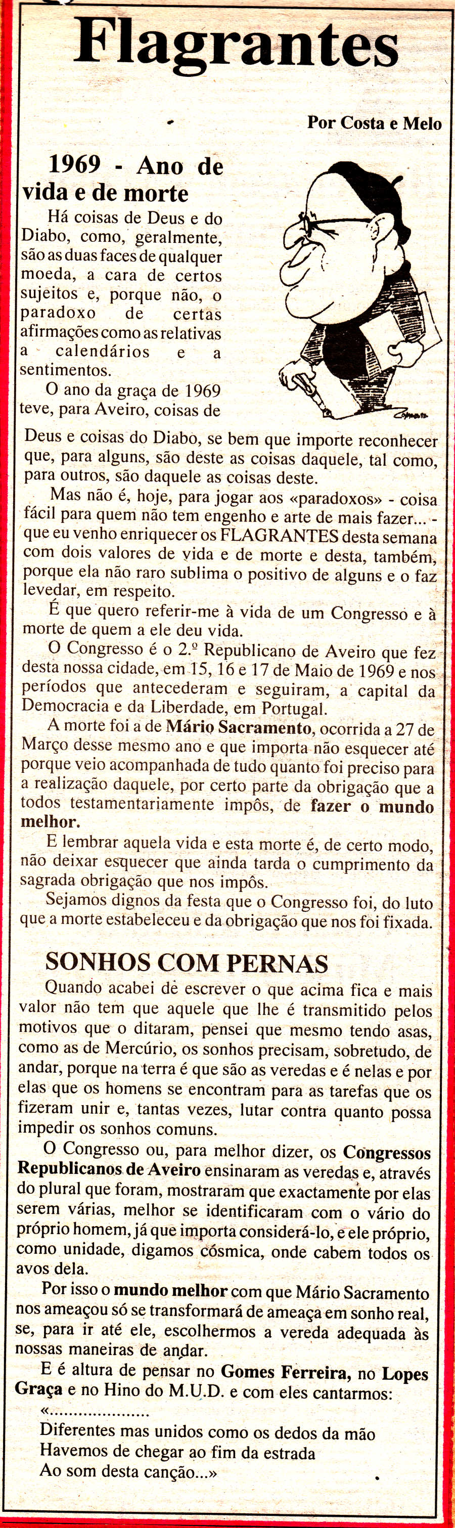 Costa e Melo recorda esse ano de acontecimentos opostos -1969 -