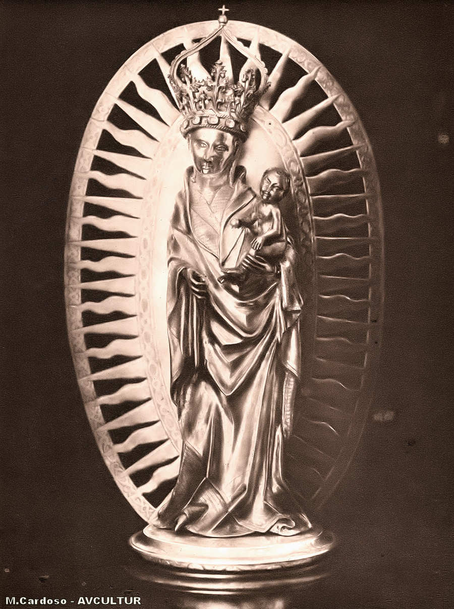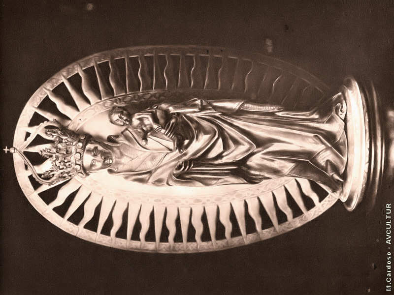S. ROQUE – MUSEU. – A «Virgem e o Menino», preciosa escultura gótica, em prata. – A sua autoria é atribuída a um artista português, cujo nome se desconhece.