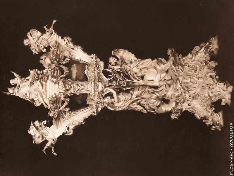 S. ROQUE – MUSEU. – RELICÁRIO, em forma de urna quadrangular, contendo as relíquias de S. Valentim. – Nos medalhões da base, cenas do martírio do Santo. (Carlo Guarnieri).