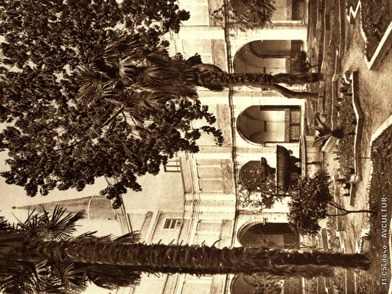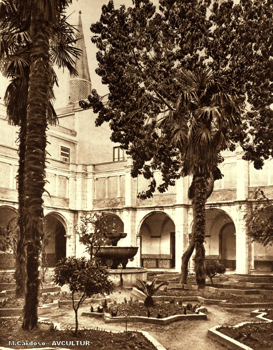 O claustro renascença, com sua fonte gótica e a agulha.