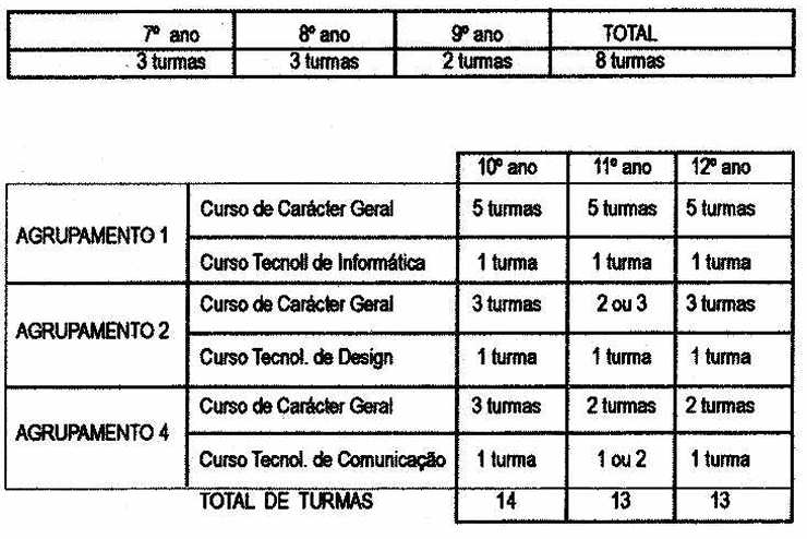 iremos ter 3 turmas no 2.º ano, 3 no 8.º, 2 no 9.º", 14 no 10.º, 13 no