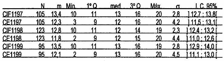 últimos anos (1997, 1998, 1999), especificando as diversas