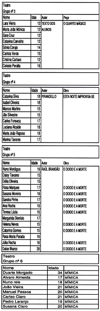 espectáculos na escola e fora dela.