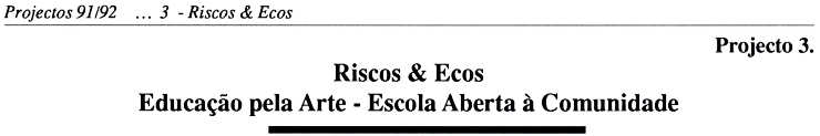 Projectos (especialmente Projecto de Dança de Aveiro). Pela primeira vez