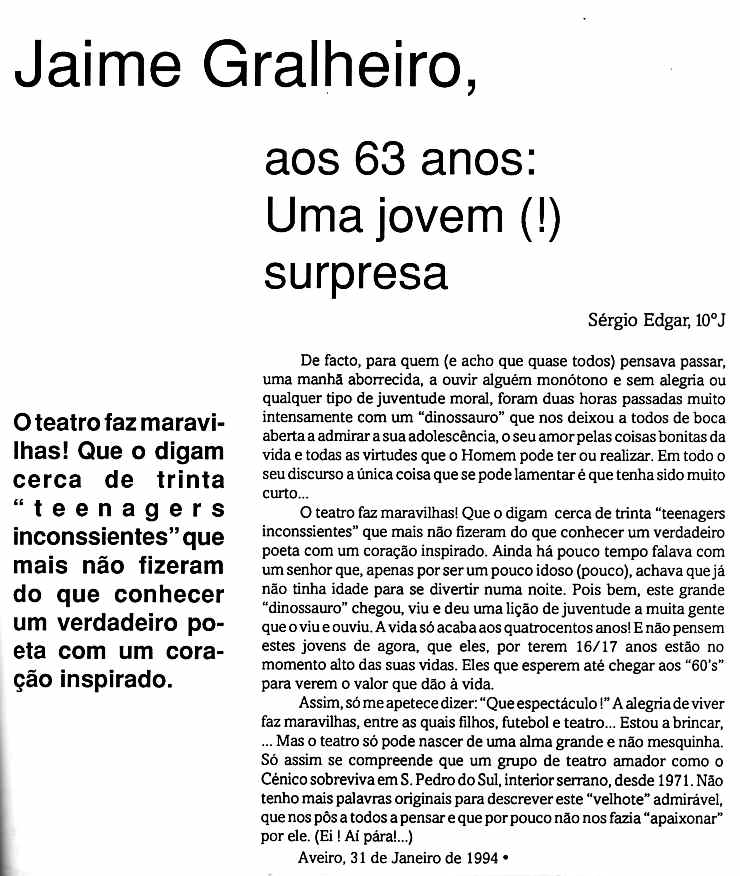 Escola Secundária José Estêvão, n.º 11, Jan.- Mar. de 1994