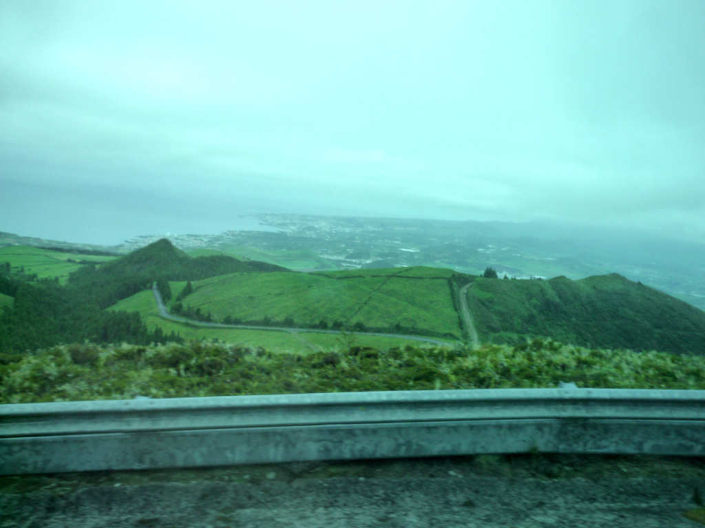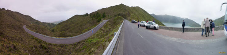 Panorâmica da estrada e Lagoa do Fogo. Clicar para ampliação e exploração da imagem.