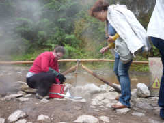 Medindo a temperatura da água.
