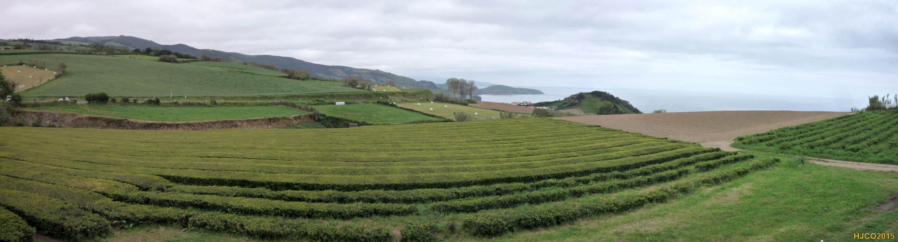 Panorâmica mostrando os campos de chá. Clicar para ampliar.