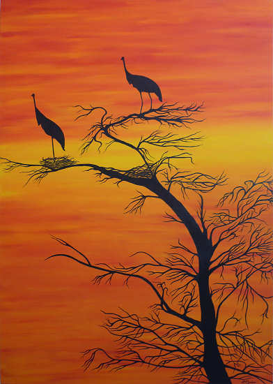 Cegonhas ao pôr do Sol - 1 x 0,7 m - Ana Maria Campos