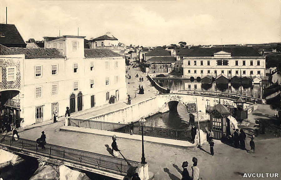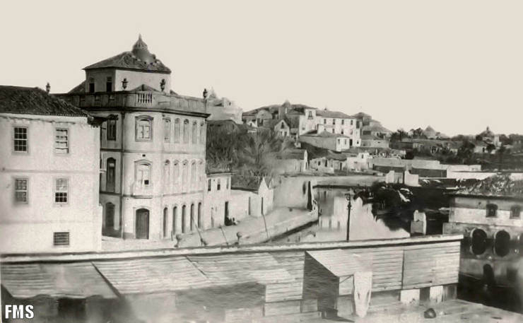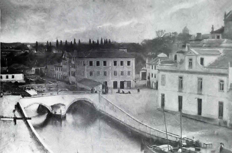 cidade, vemos a metade direita do moinho de marés e o Esteiro da