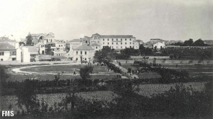 1909. Mostra-nos uma pista circular marcada no solo. Aqui, e no Rossio,