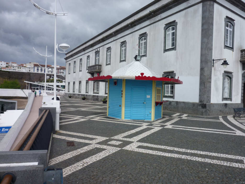 Porto de Angra, observado do largo em frente à Igreja da Misericórdia. Clicar para ampliar.