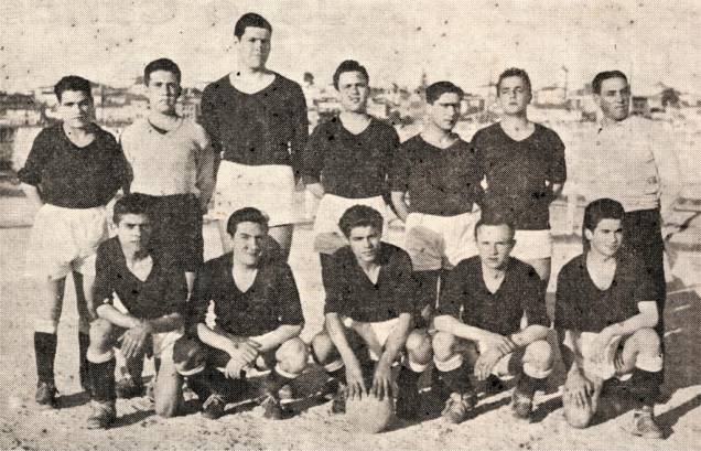 No 1.° plano, da esquerda: Nini, Carlos Santos, Rodrigues, Oliveira e Tomás. No 2.° plano: