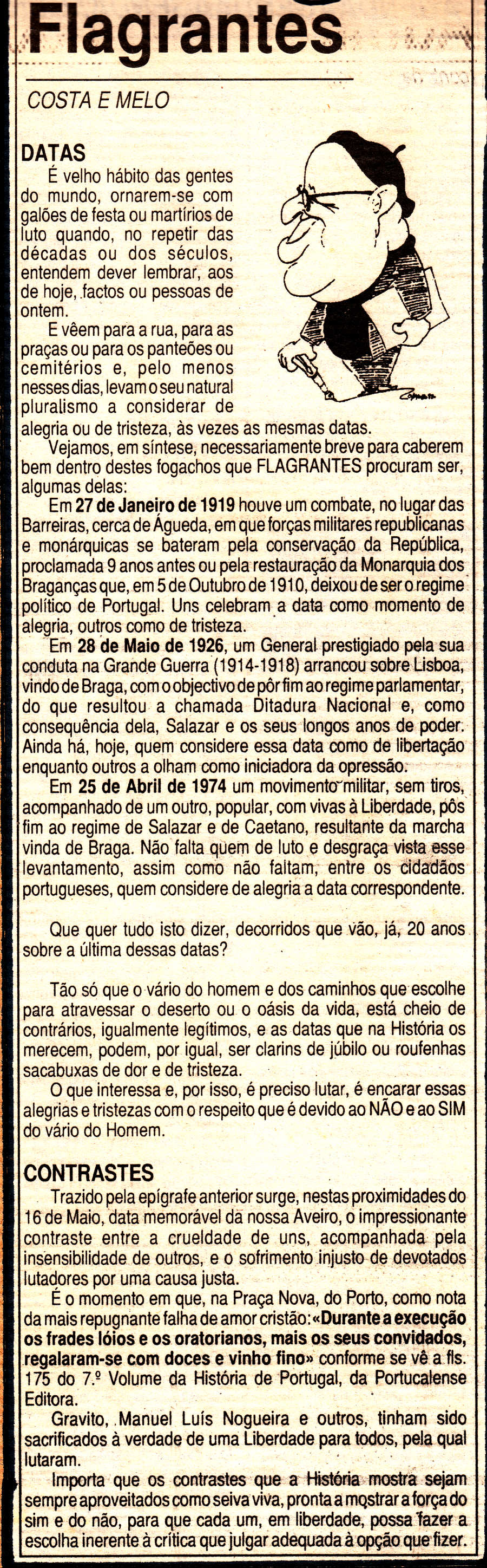 No seguimento desses contrastes, Costa e Melo recorda a revolução