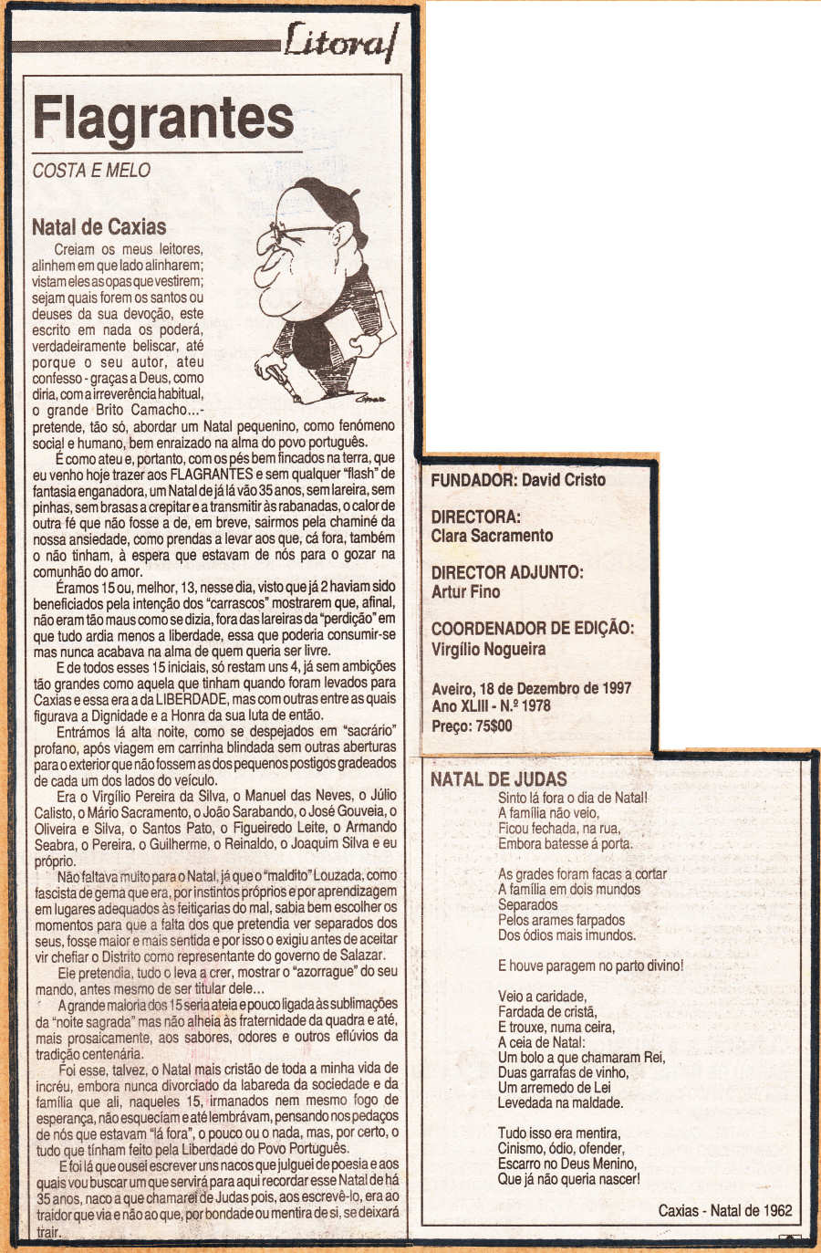 Costa e Melo recorda o Natal de1962 em que 13 (mas tinham sido 15,