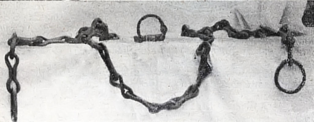 correntes, mordaças, embudes (Para o suplício da água) e outros
