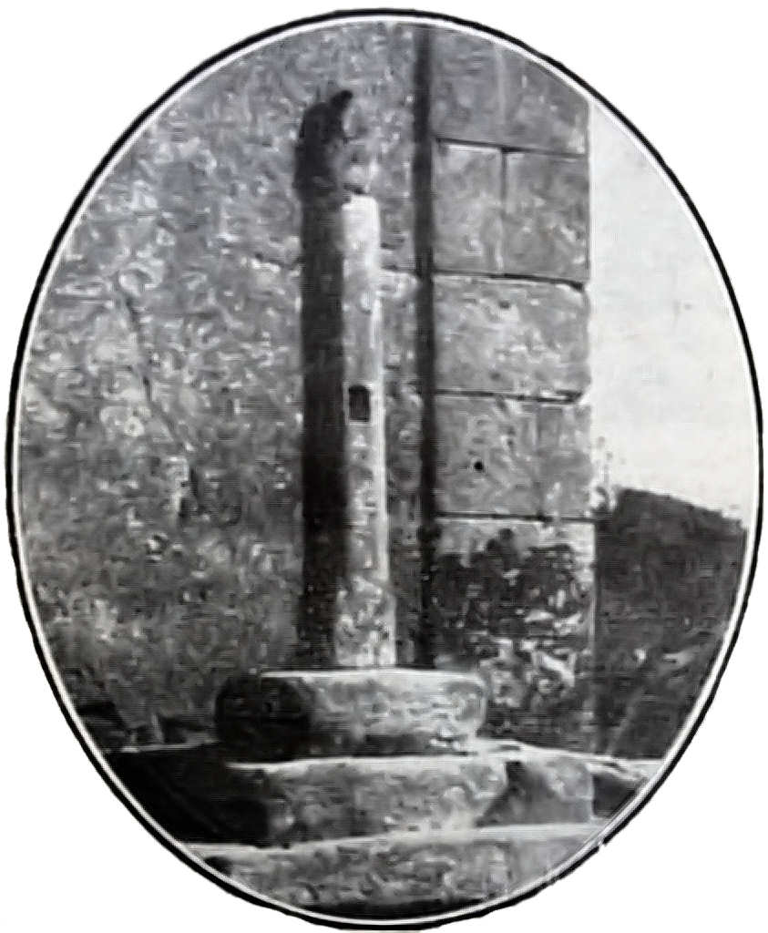 Três degraus de acesso, uma base mal definida, de secção quadrada,