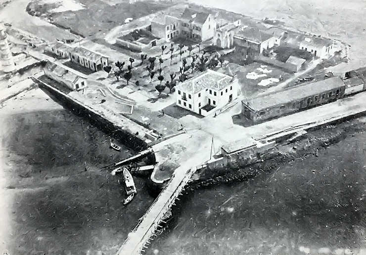 paredão, sucessivamente reconstruído. A torre que se vê é o farol,