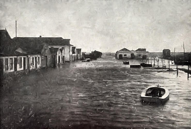 AVEIRO Aspecto da cheia no Canal do Matadouro e nas ruas marginais, no dia 28 de Janeiro de 1937, às 6 horas da manhã.