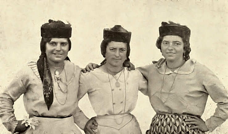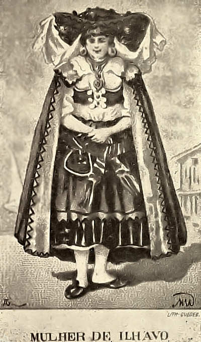 debruns de fita de lã; a mulher de então não usava ainda xaile; e mesmo