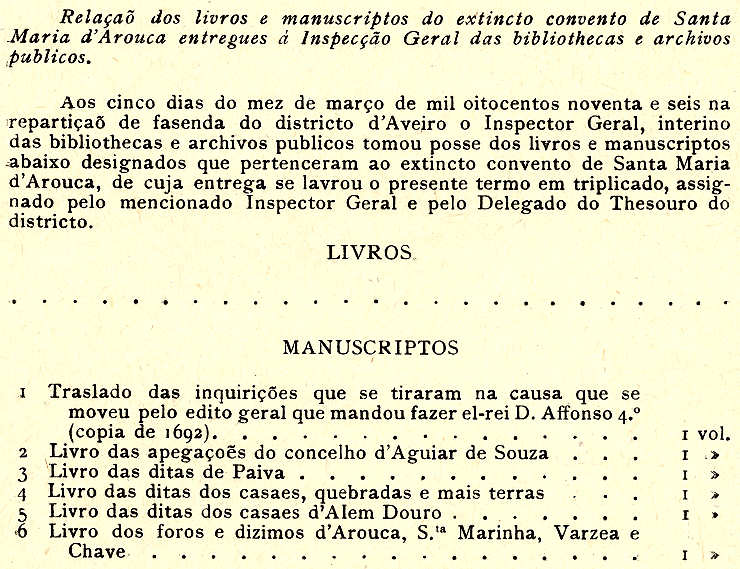 com pergaminhos» de Santa Maria de Arouca, recolhidos «da Biblioteca