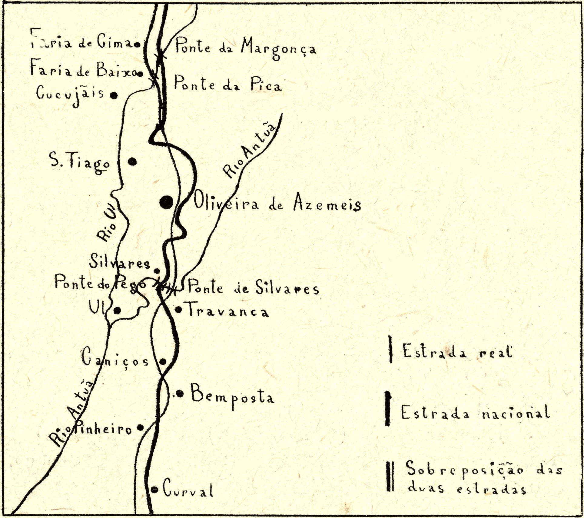 real e estrada nacional desde o extremo sul da freguesia e vila de S. João da Madeira até o Curval, de Pinheiro da Bemposta, e tirou as