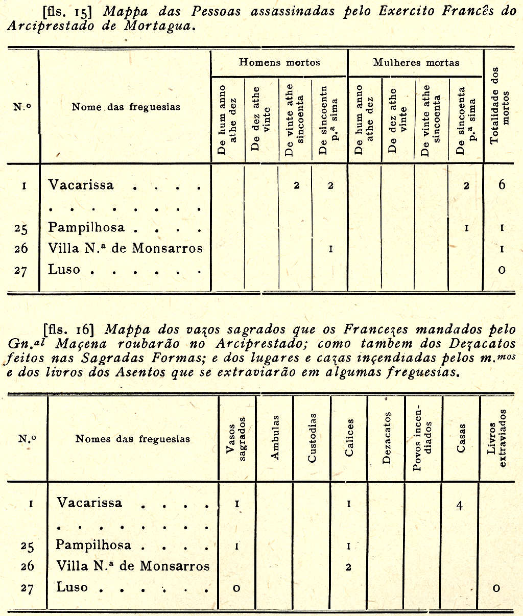 Tam som.te dous lugares desta freguezia forão calcados pellos Francezes que são Monsarros e Grade.