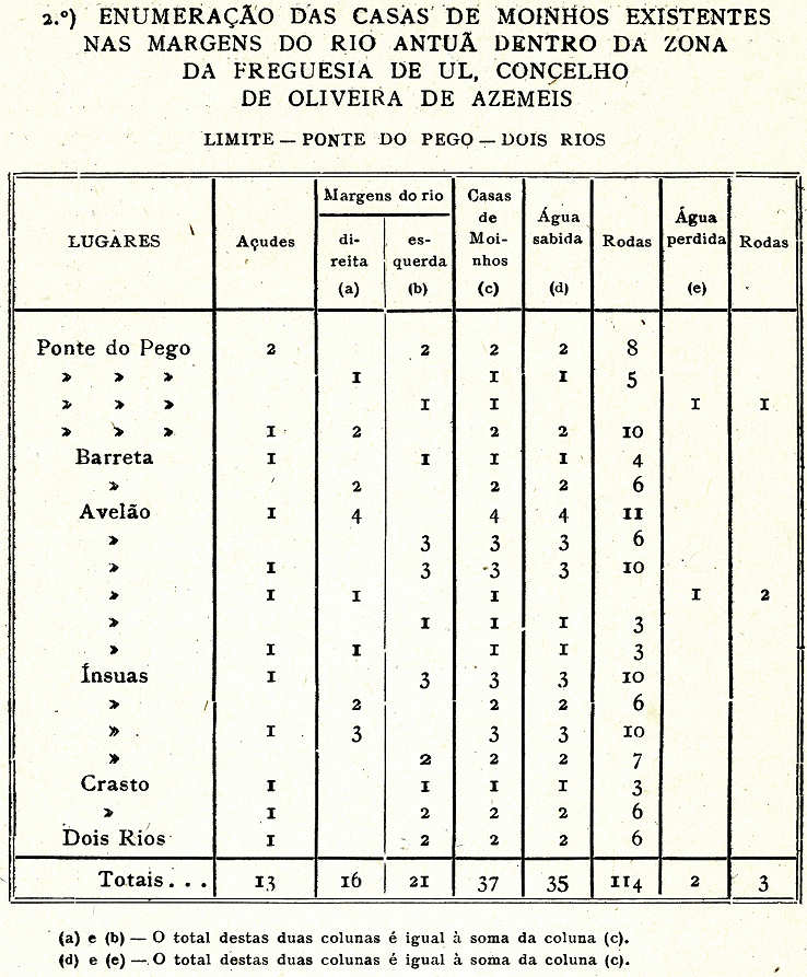 lugares da freguesia por onde correm os dois rios (Antuã e UI), e açudes, casas de moinhos nas margens dos mesmos e