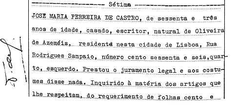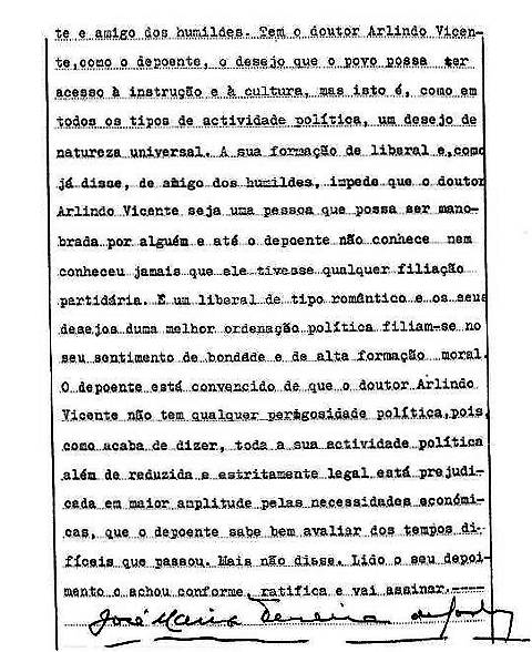 14, 15 e 16 - Depoimento abonatório, prestado pelo escritor Ferreira de Castro, grande amigo de Arlindo Vicente, no Auto de Medidas de Segurança contra ele instaurado pela PIDE.