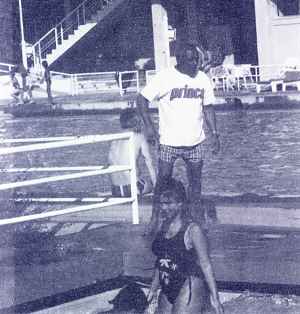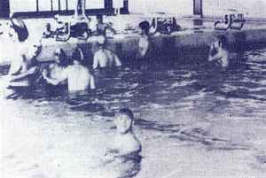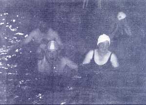 banho e respectivas toucas e vieram até à piscina. À sua espera