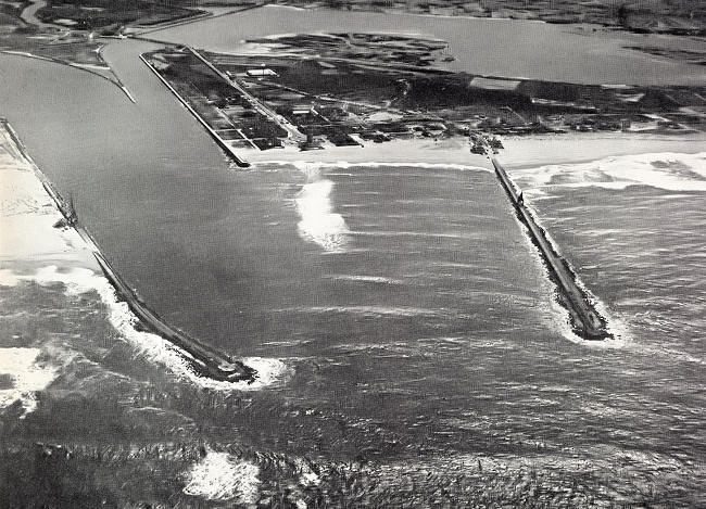 Barra com os molhes Norte e Sul. Foto cedida pelo "Correio do
