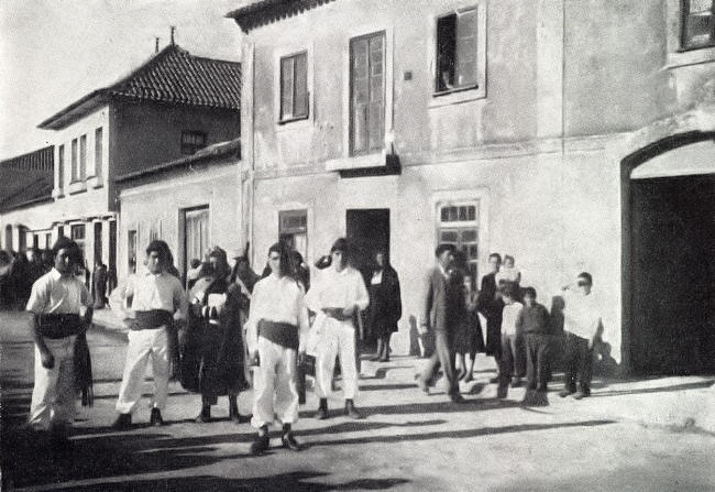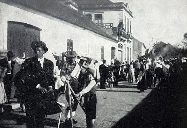 Um aspecto do cortejo, que, com muita animação, se aproxima da igreja.