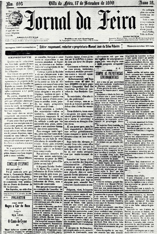 deste jornal, na Biblioteca Municipal da Feira e alguns na Nacional