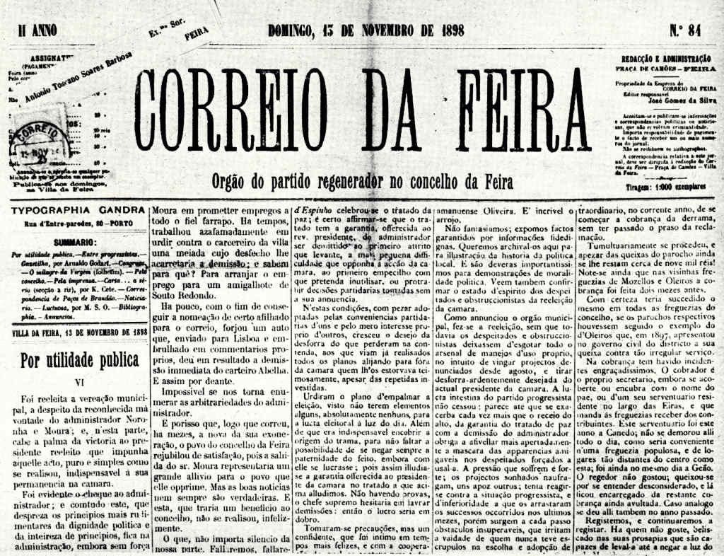 da Feira» impresso nesta Vila, na tipografia do Feirense e