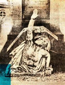 mortalha pelas costas, soerguendo a pesada laje tumular e emergindo do