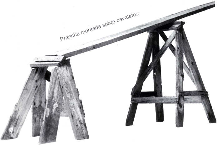 de 3 m. de comprimento, 30 cm. de largura e 4 cm. de espessura, usada