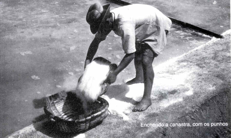 como plano inclinado, por onde sobem os moços para despejar o sal das