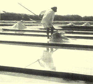 das cozinhas ou sal comum, obtido por evaporação da água da Ria, que