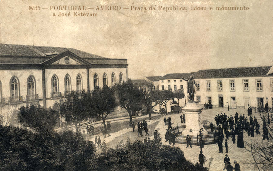 30 - Praça da República, Liceu e monumento a José Estêvão. Postal circulado em 1917.