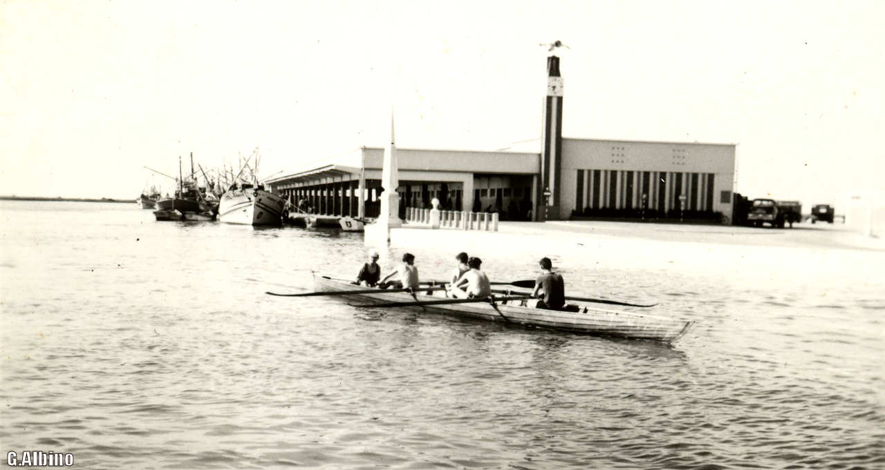 remo no Canal das Pirâmides. Do lado direito dos remadores, a