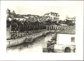 num desenho de 1891. Ao fundo o aqueduto. No canto inferior direito,