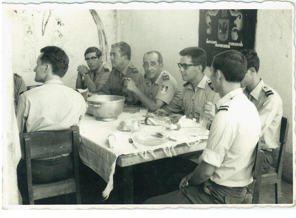 No momento desta fotografia, ao almoço, em 25 de Dezembro de 1968, já eu estava casado, com 23 anos. É no refeitório do nosso quartel, na província do Zaire, bem acima de São Salvador do Congo, onde recebemos a visita do CMDT da ZIN, brigadeiro Henrique d’Avellar, Oficial-General de duas estrelas. Confidenciou-me que foi “Cabo de Guerra”. Por ironias do destino, na mesa de Oficiais e Sargentos, eu não sou visto, mas estava lá. Apenas vejo de costas o meu amigo, o furriel Araújo. Também não estava presente o nosso primeiro sargento Mendes, por estar a fazer rabanadas na padaria!