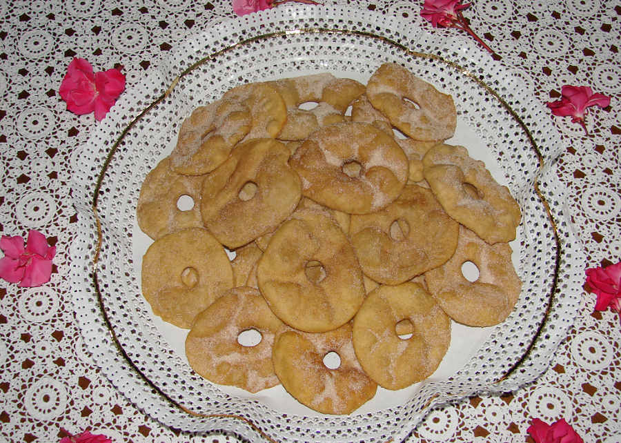 Fritam-se em óleo bem quente e polvilham-se de açúcar e canela.