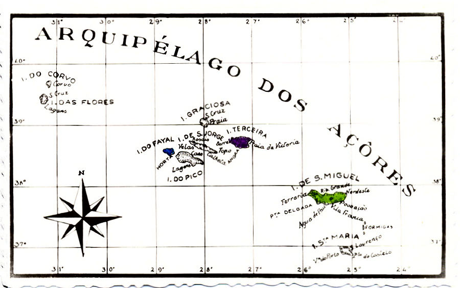 N.º 1571 AÇORES. ARQUIPÉLAGO - Ed. CÓMER- Trav. do Alecrim, 1 Tel. 328775 - Lisboa, Portugal - SD - Dim. 14,7x10,4 cm. - Col. Manuel Bóia (1981).