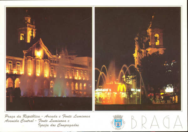 Nº 33. Braga. Praça da República. Arcada e Fonte Luminosa. Av.
