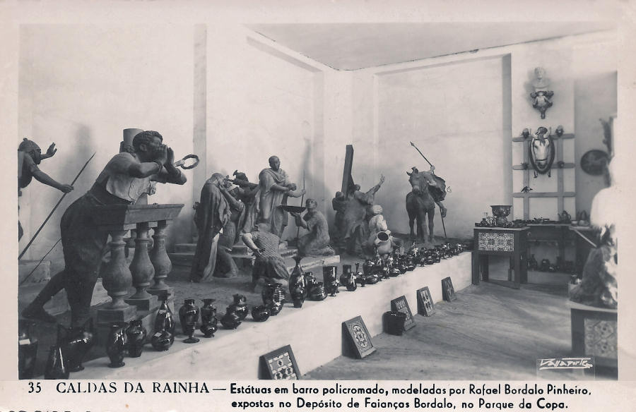 418 - Estátuas em barro policromado, modeladas por Rafael Bordalo Pinheiro...