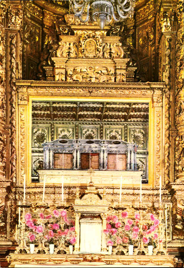 61 - Altar-mor com o túmulo de prata e o corpo da Rainha Santa Isabel no Convento de Santa Clara.