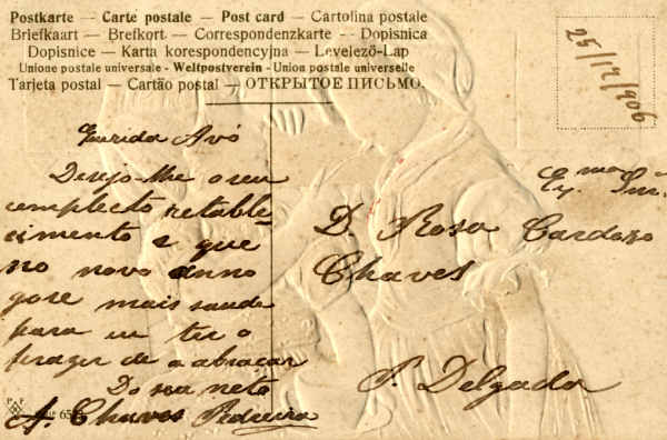 Postal com relevo circulado em 1907.