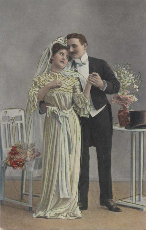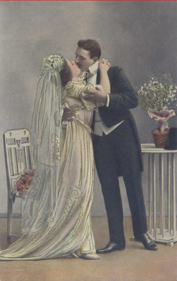 Série 1333/4 - Postal com dourados em relevo- Edição anónima - Dim. 13,7x8,7 cm - Col. Amílcar Monge da Silva (cerca de 1910)